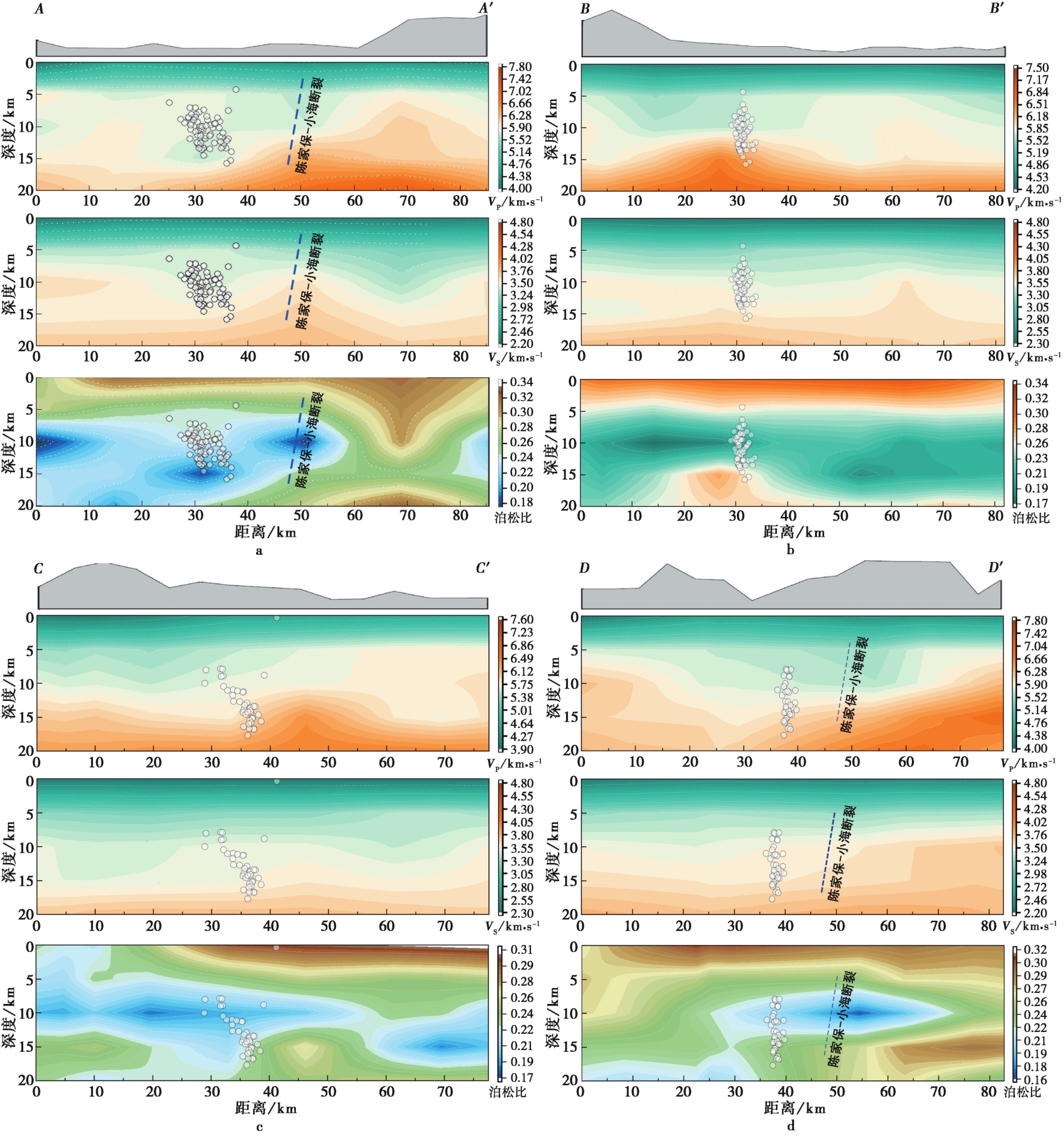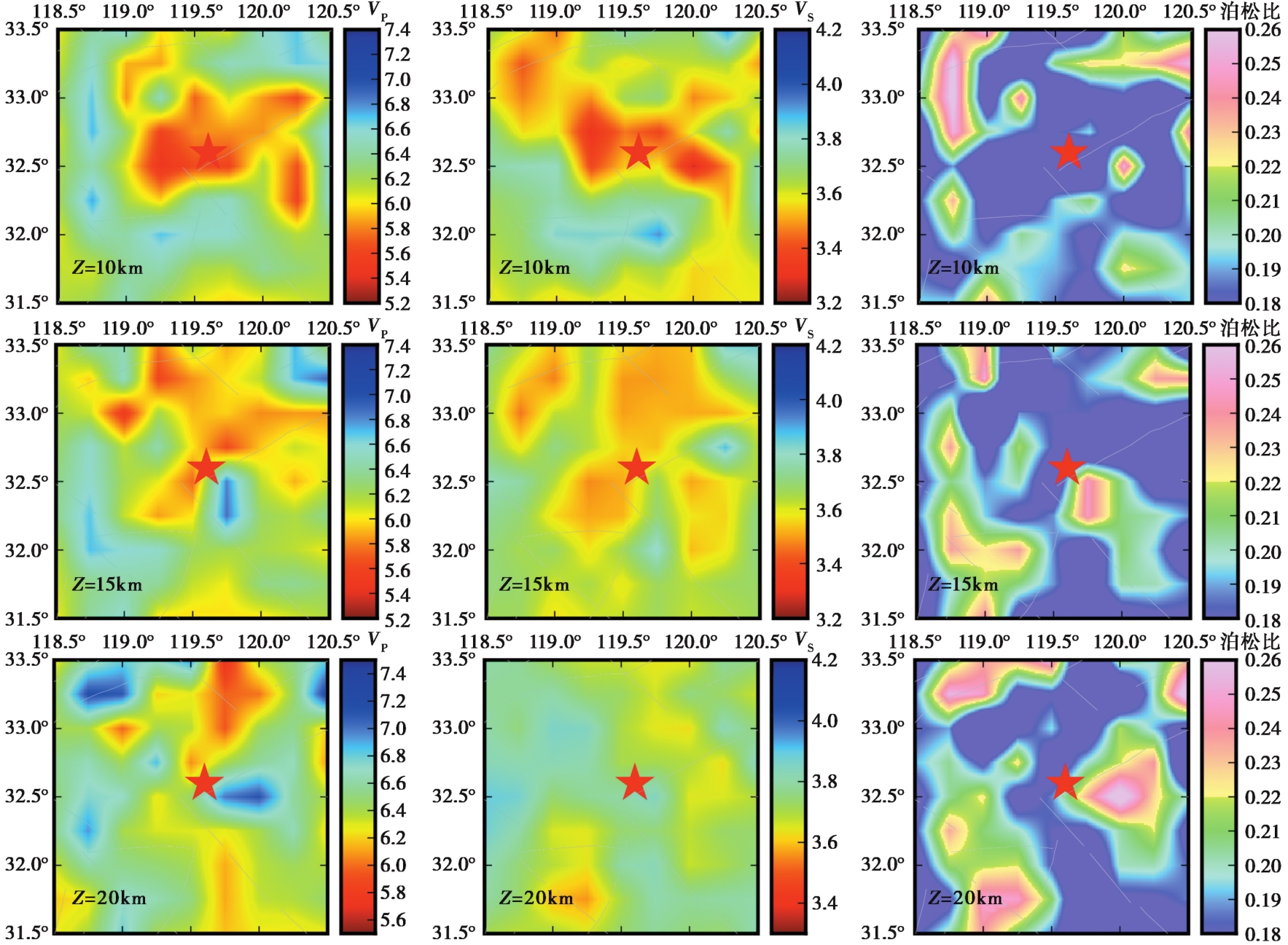 Near the epicentral area, remarkable velocity contrasts are observed, with the Chenjiapu-Xiaohai Fault exerting a significant segmentation effect. The NW side of the fault is marked by low velocity and low Poisson's ratio anomalies, while the SE side displays increasing high-velocity anomalies with depth. Strong stratification of velocity and Poisson's ratio is also evident. The Jiangdu swarm is situated in a low-VP, low-VS, and low-Poisson's ratio anomaly zone, where the drop in P-wave velocity is more pronounced than in S-wave velocity, suggesting no involvement of fluids during the sequence. The low Poisson's ratio and narrow fault zone indicate that brittle fracture of rock strata was the dominant mechanism.
