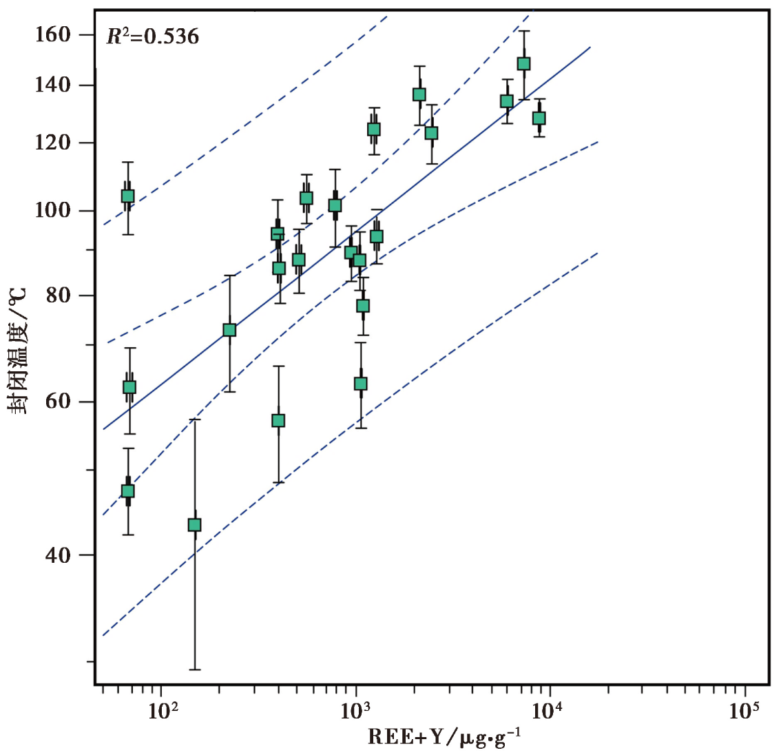 | 其他矿物 | 萤石 | 1)铀含量高达100μg/g; 2)适用于限定低-高温热液矿脉历史。 | 1)高铀含量样品中普遍存在微小的铀质包体; 2)封闭温度受制于化学成分、晶格结构影响; 3)萤石较脆弱,测试前对萤石样品进行研磨和抛光处理,该过程会造成4He丢失。 | |||