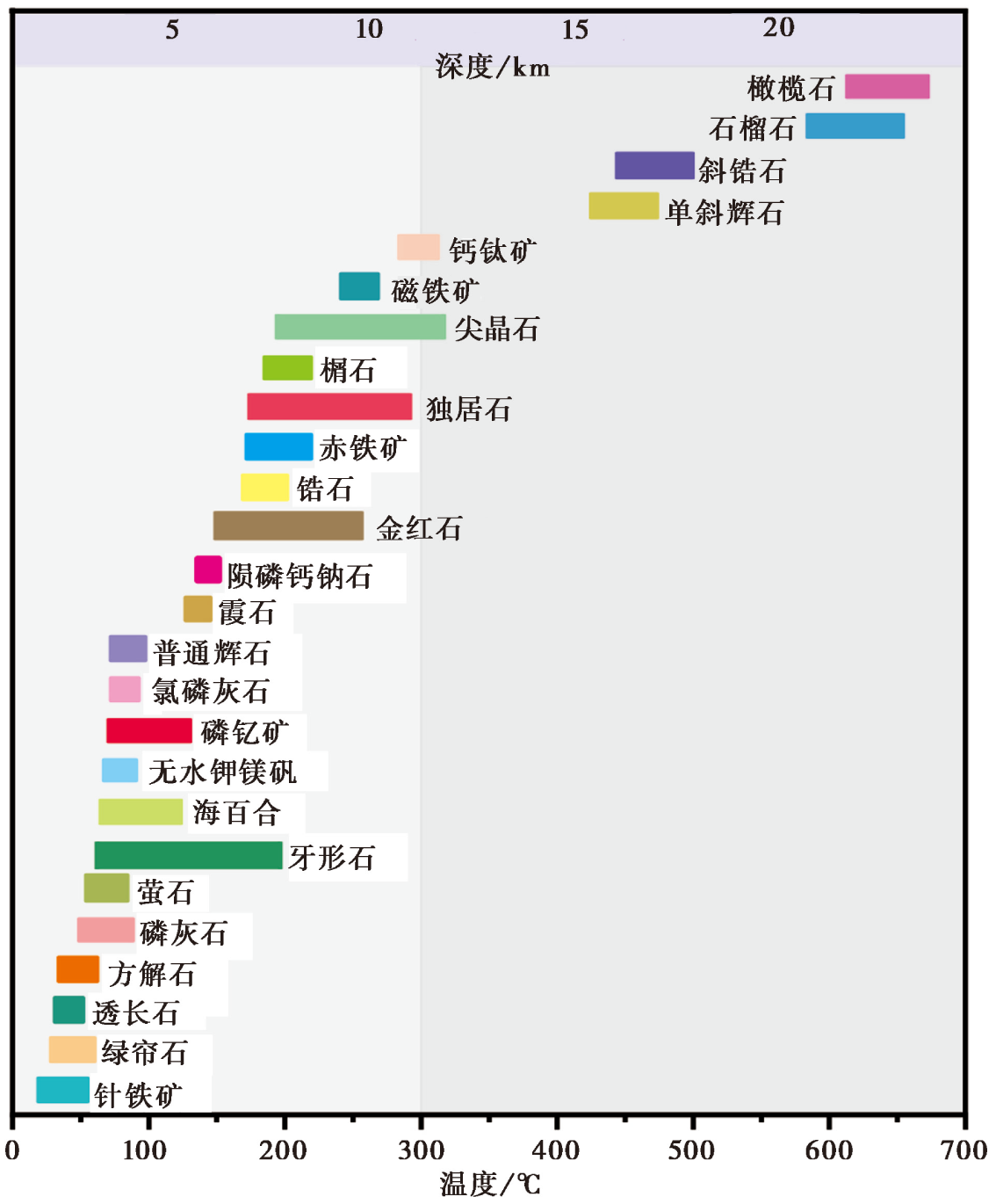 | 石榴石 | 1)离子孔隙率低,对4He具备良好保存条件; 2)能够捕获热液活动的开始信息,对热液活动的限定精确。 | 1)不同化学成分导致4He扩散行为的差异,对定年结果的准确性构成挑战; 2)狭窄成分环带、内部晶格辐射损伤、高U-Th包裹体等因素影响氦的扩散机制; 3)低铀石榴石如何获得准确的年龄结果仍具挑战性。 | 1)引进电子探针微分析(EPMA)提供矿物成分的详细信息,利用高分辨率X射线衍射(HRXRD)精确测定矿物的晶体结构; 2)发展高分辨率的矿物学和地球化学分析技术,解决成分环带、晶格辐射损伤等问题,提高对氦扩散机制的理解; 3)与其他定年方法(如U/Pb、Ar/Ar和Lu/Hf)结合,获得全面的地质时间框架。 | |||