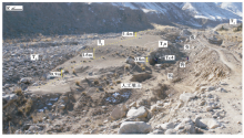 洪水坝河河口东岸地区T5阶地(相当于区域上的晚更新世A3期洪积扇)断层陡坎高17~20m。由于流水侵蚀改造, T5阶地被侵蚀且堆积了后期的冲洪积扇, 包括: 全新世早期的A4冲洪积扇、 全新世早-中期冲洪积扇A5a、 全新世中-晚期的冲积扇A5b和现代冲洪积物A5c。除了A5c, 其余的后期冲洪积扇上都发育有断层陡坎, 高度从0.4~5m不等。